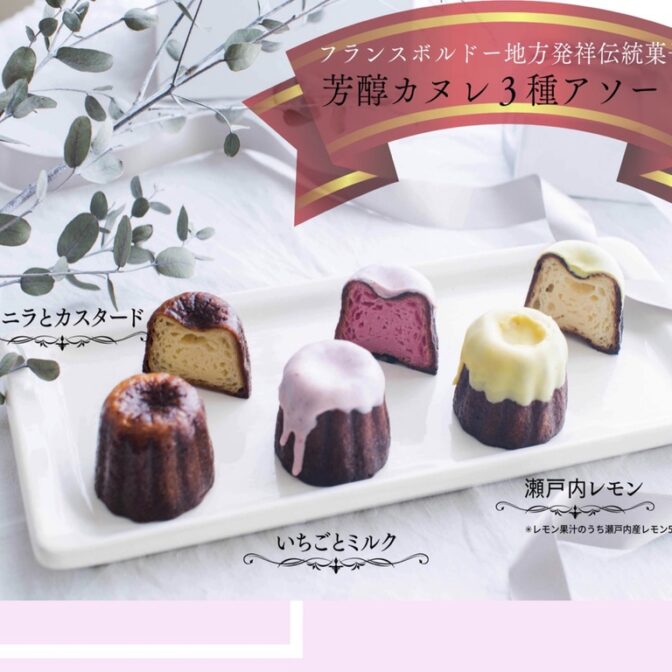送料無料 カヌレ 3種 各8個ずつ 合計24個 構想から20年の 日本人向け しっとり ジューシー カヌレ 個包装タイプ バニラカヌレ 苺カヌレ レモンカヌレ プレゼント ギフト