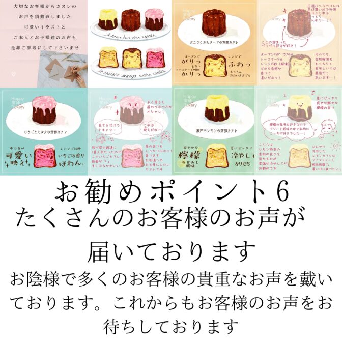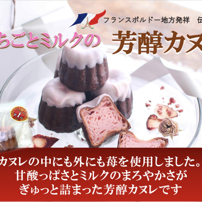 諦めておりましたが、先日地元のスーパーマーケットで苺カヌレをラスイチゲットしました!美味しくてリピしたいですが、売り切れだったらお取り寄せ通販もお願いします!