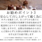 本商品は本来の風味を損なわないために脱酸素剤や防腐剤を使用せず、冷凍販売のみとさせて頂いております。常温に放置せずお早めにお召し上がり下さい